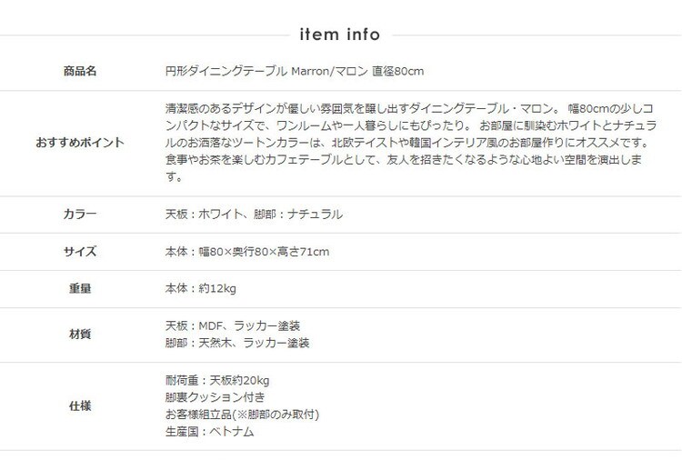 清潔感のあるデザインが優しい雰囲気を醸し出すダイニングテーブル・マロン。 幅80cmの少しコンパクトなサイズで、ワンルームや一人暮らしにもぴったり。 食事やお茶を楽しむカフェテーブルとして、友人を招きたくなるような心地よい空間を演出します。