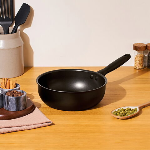 2-3人分の量を作るのに適したサイズ。通常のアルミニウムより約8倍硬い、硬質アルマイト加工。