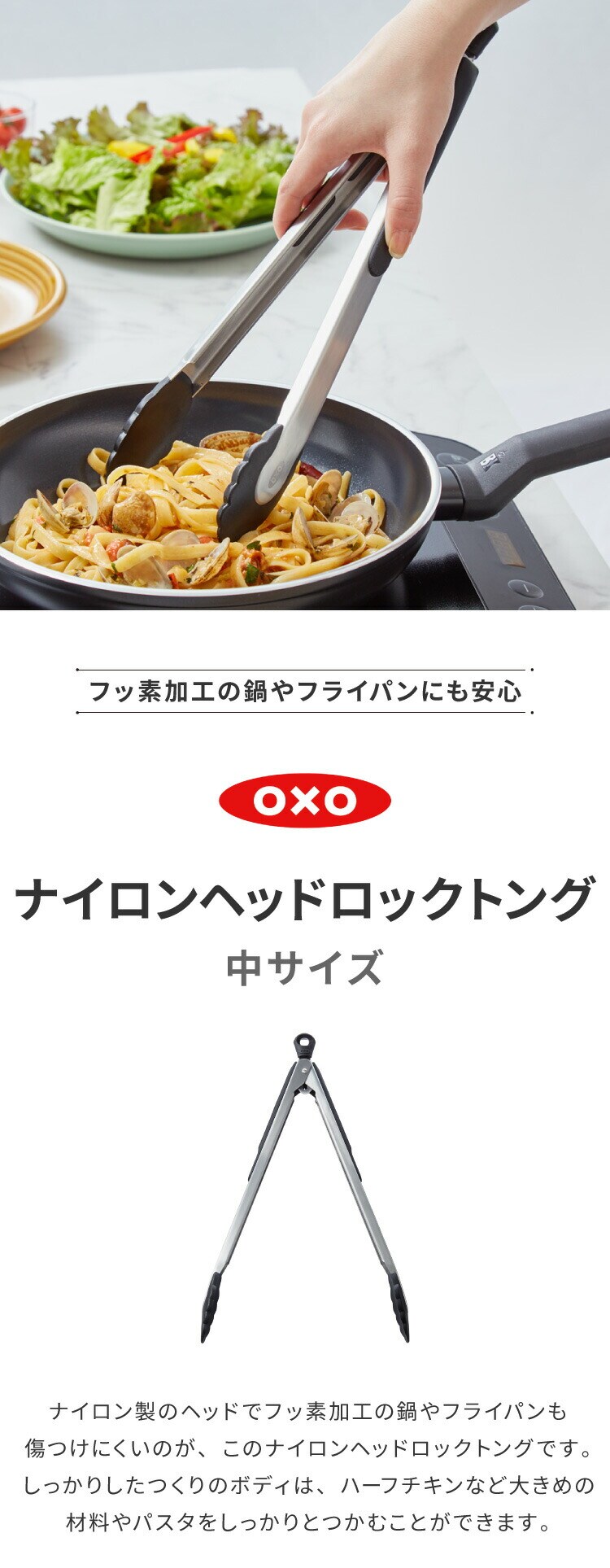 OXO オクソー ナイロンヘッド ロックトング 中 34cm トング 調理用トング 取り分けトング 盛り付けトング ナイロン製トング パスタトング 食洗機対応 おしゃれ
