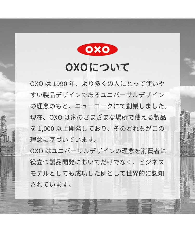 OXOは1990年、より多くの人にとって使いやすい製品デザインである、ユニバーサルデザインの理念のもと、ニューヨークにて創業しました。
