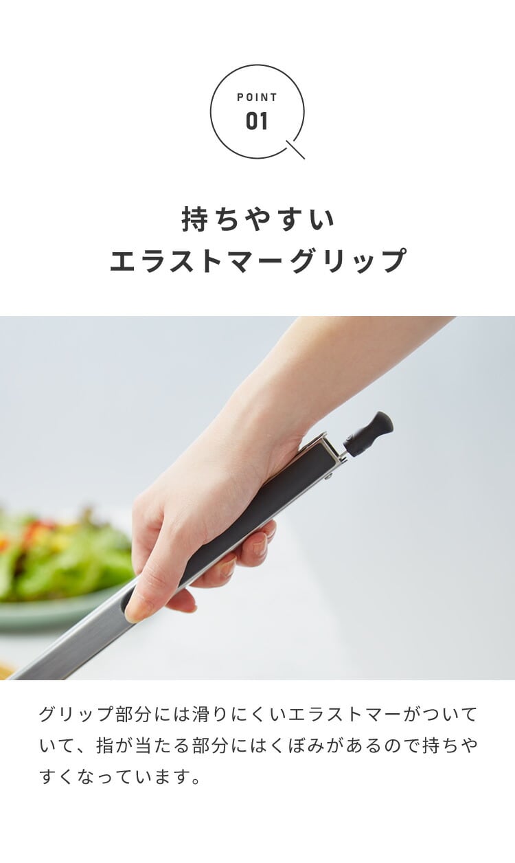 しっかりしたつくりのボディは、ハーフチキンなど大きめの材料やパスタをしっかりとつかむことができます。