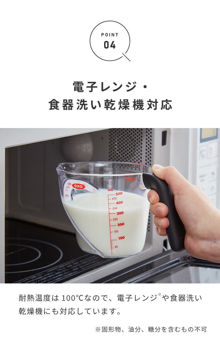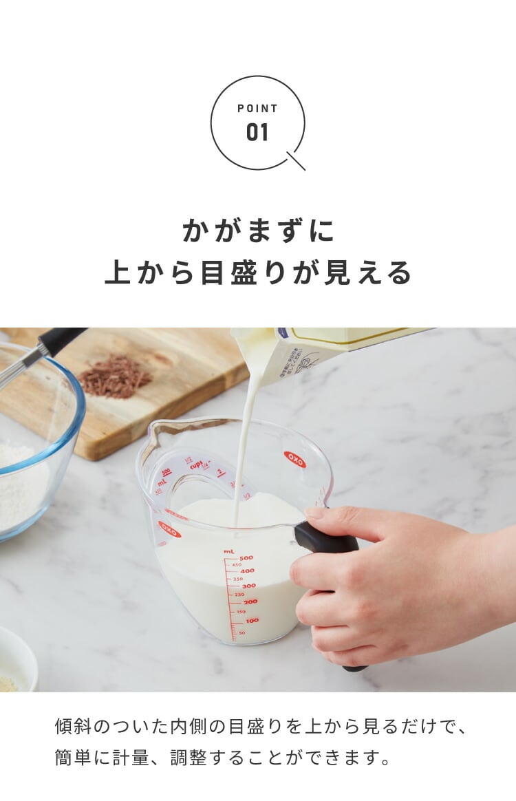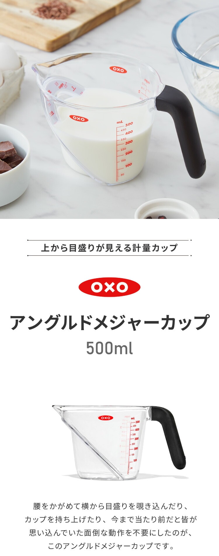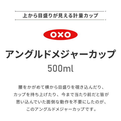 OXO オクソー 上から見える 計量カップ 中 500ml ミニアングルドメジャーカップ メジャーカップ 計量カップ 耐熱カップ 電子レンジ対応 食洗機対応 おしゃれ