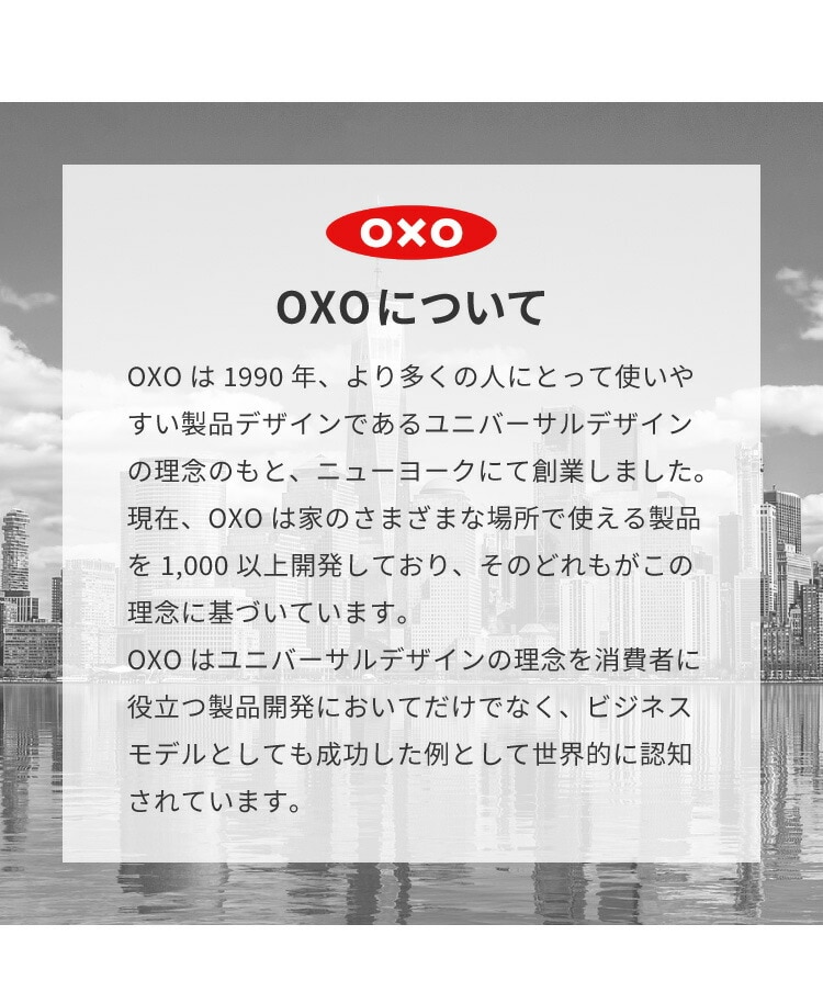 OXOは1990年、より多くの人にとって使いやすい製品デザインである、ユニバーサルデザインの理念のもと、ニューヨークにて創業しました。