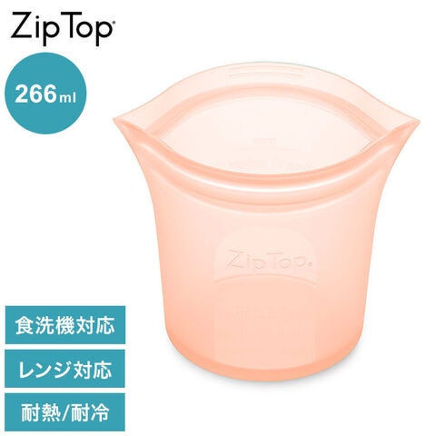 ZipTop ジップトップ 保存容器 ショートカップ ピーチ 266ml シリコンバッグ 保存袋 耐熱・耐冷 シリコン製 電子レンジ調理 食洗機対応 保存コンテナ 05038396