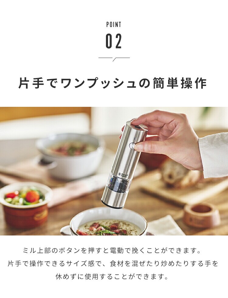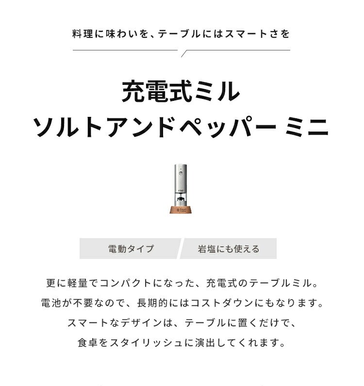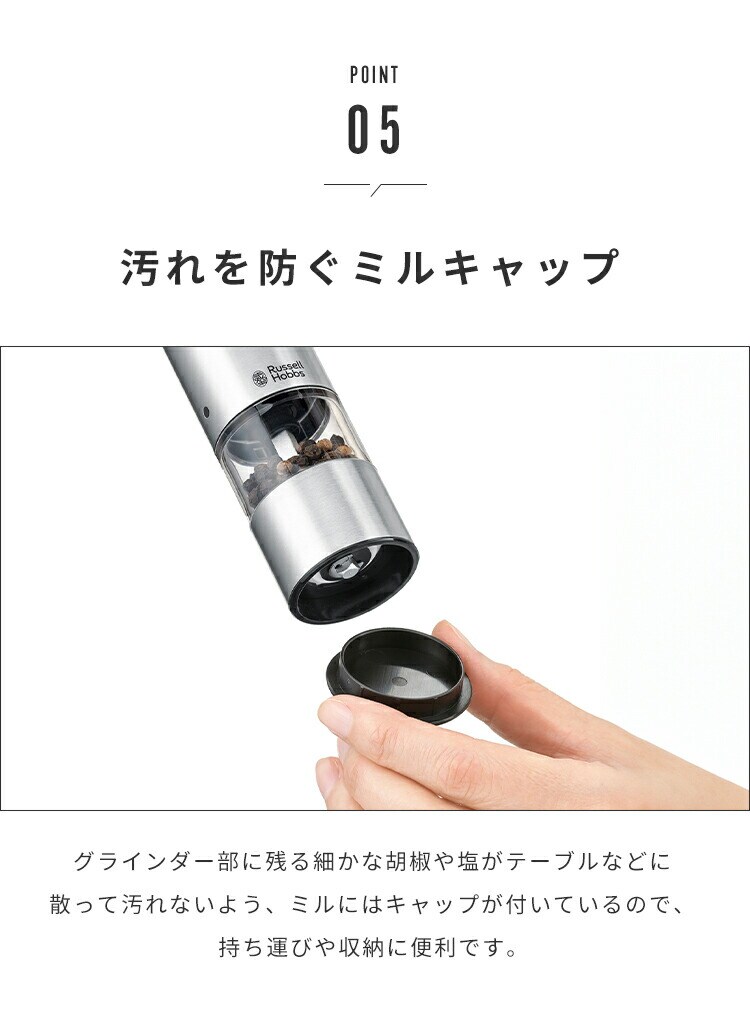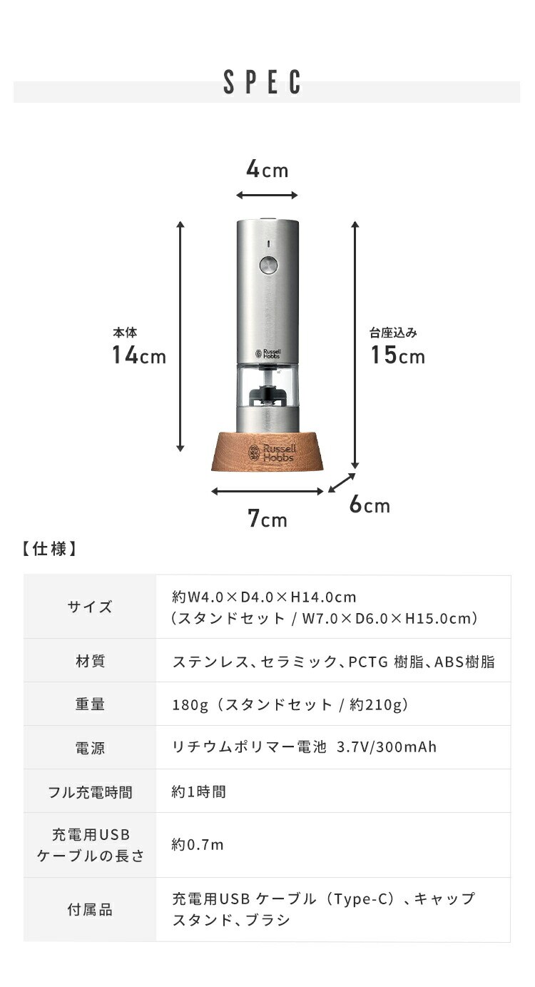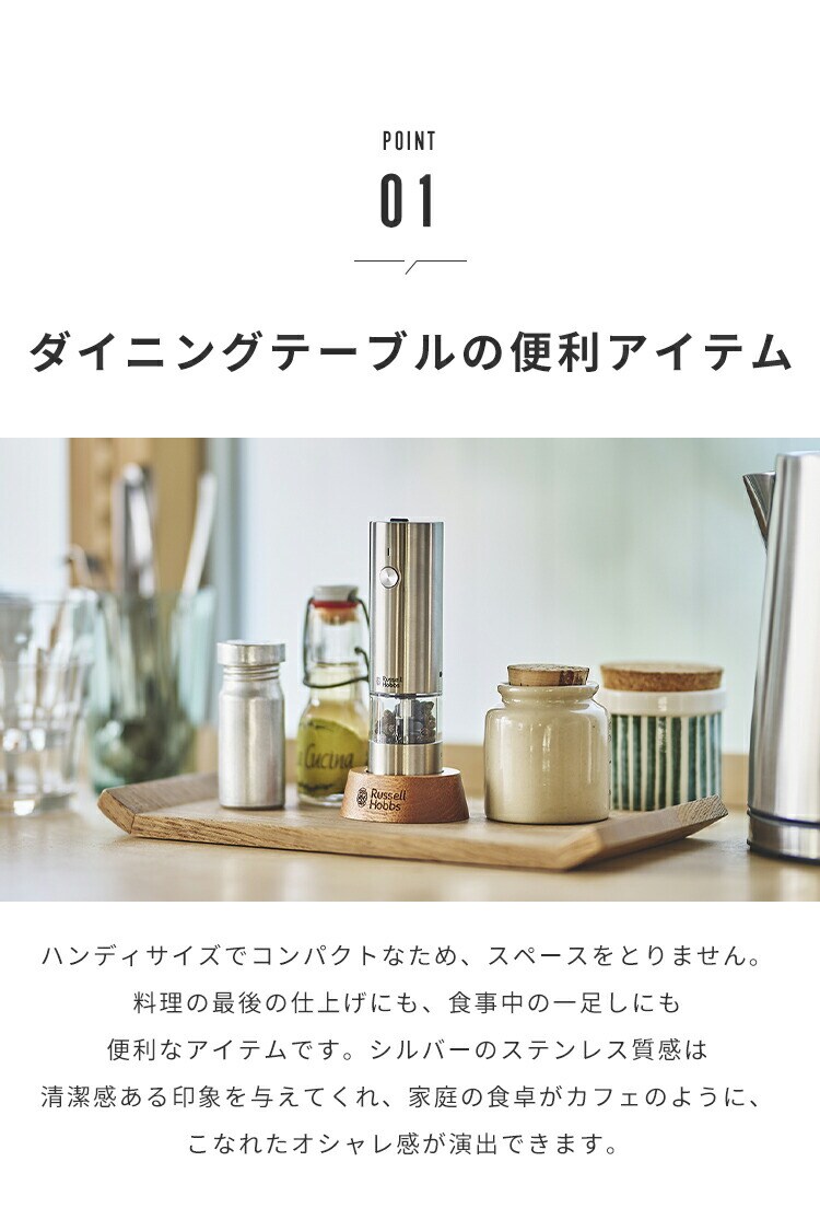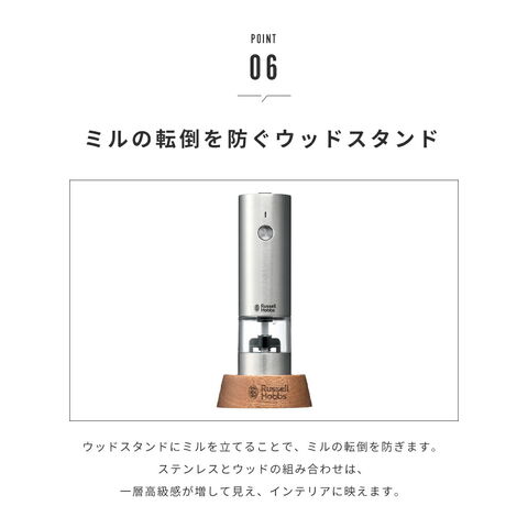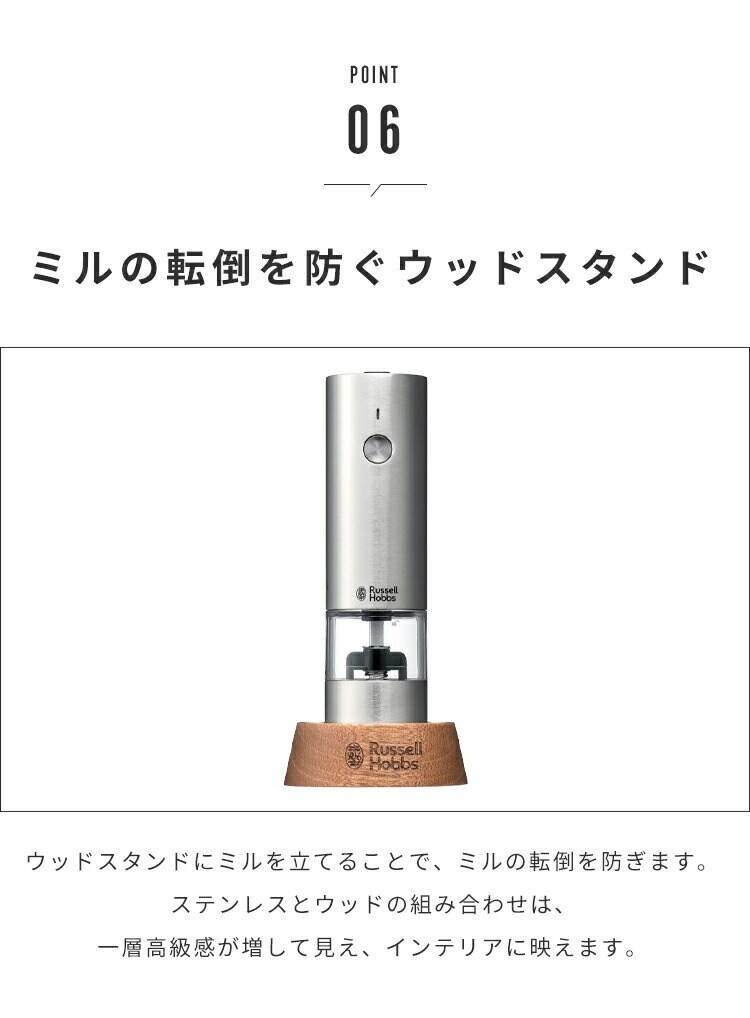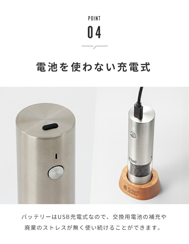 ラッセルホブス 充電式ミル ソルト&ペッパー ミニ 7941JP 電池不要 ペッパーミル ウッドスタンドセット 1本 電動 ミル ペッパー 塩 調味料 Russel Hobbs 正規販売店【送料無料】