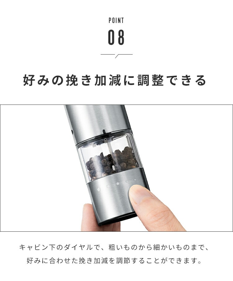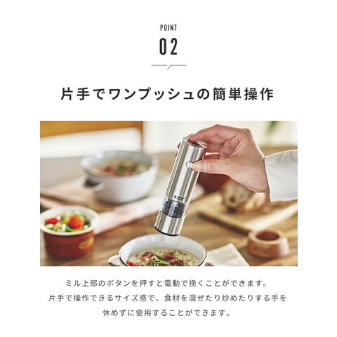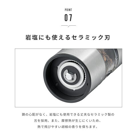 また、摩擦熱が生じにくいため、熱で飛びやすい胡椒の香りを保ちます。