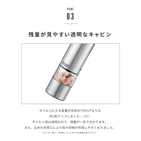 また、広めの充填口により、塩や胡椒が充填しやすくなりました。