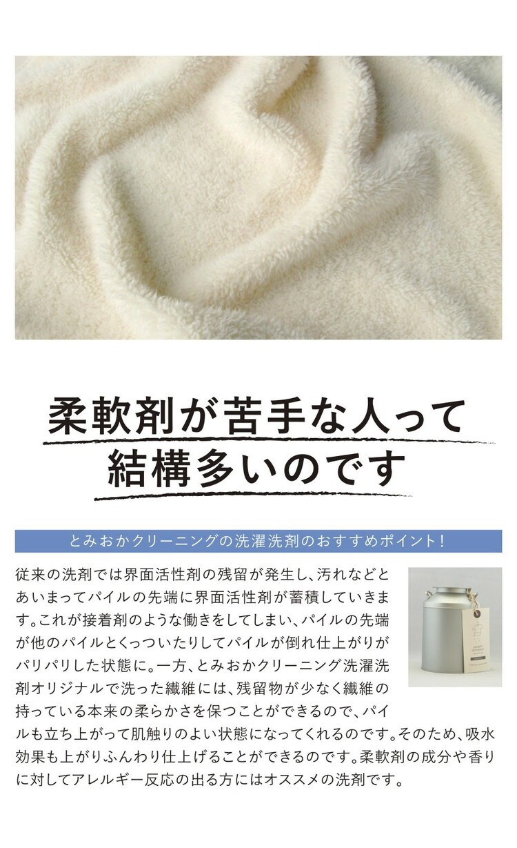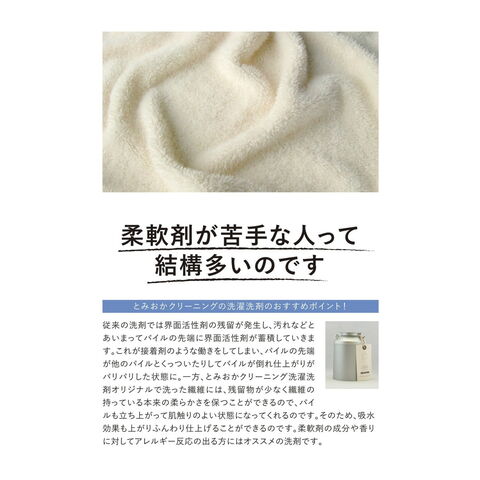 また、柔軟剤を使用しなくてもふんわり柔らかく仕上がりますので、柔軟剤による肌荒れにお悩みの方にもおすすめです。