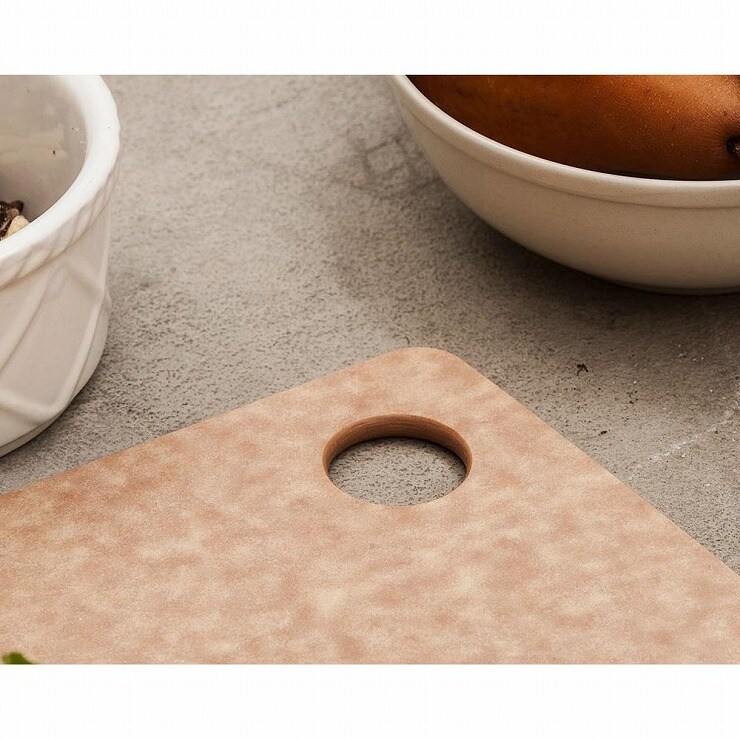 天然木の繊維を合成した素材を使用しているため、耐久性に優れ、しかも適度な固さで包丁をいためません。