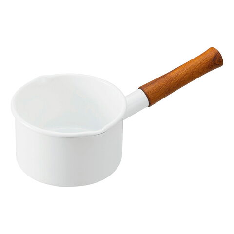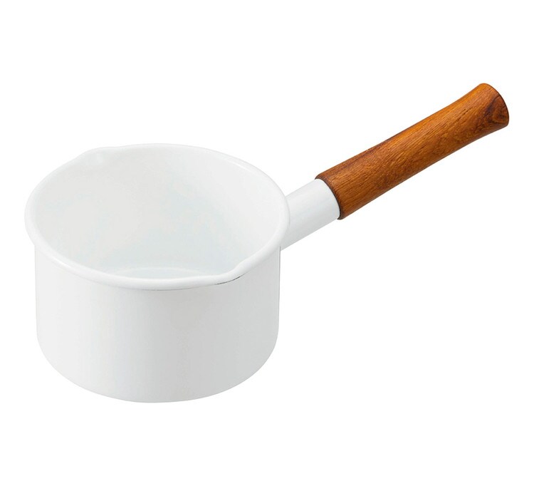 ハンドルの琺瑯部分を長めに設計しており、焦げ付きにくくなっています。注ぎ口が両サイドについて、とても使いやすいのが特徴。 ミルクの温めはもちろん、1人分のスープづくりにもぴったり。