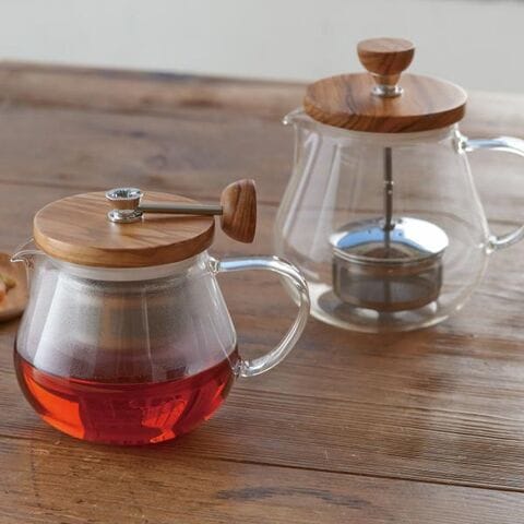 材質:本体/耐熱ガラス、フタ・ツマミ・ハンドル/オリーブウッド、フタ台座・内フタ/ポリプロピレン、シャフト・ストレーナー一式・ナット/ステンレス
