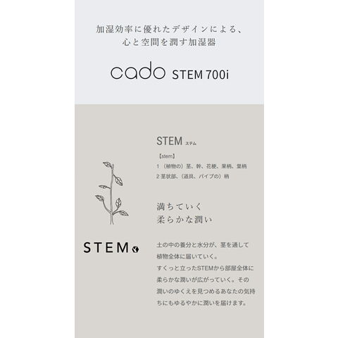 cado カドー 加湿器 STEM 700i HM-C700i ステム 超音波式 加湿機 2.3L 大容量 17畳 おしゃれ デザイン 除菌 抗菌 カートリッジ式 お手入れ簡単 タワー型【送料無料】