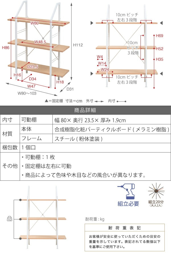 [内寸]:(上段棚)幅80×奥行23.5cm×高さ86cm