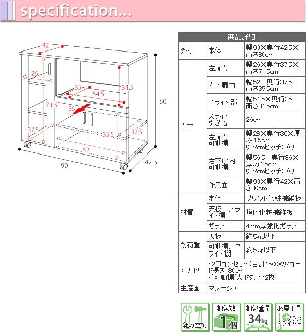 (作業面)幅90×奥行42×高さ80cm