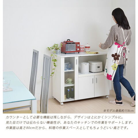 シンプルなSIMシリーズのカウンター。コンパクトでキャスター付だから、女性でもコロコロと簡単移動。ガラス扉内にオシャレな食器を収納すれば、見せる収納が出来ます。