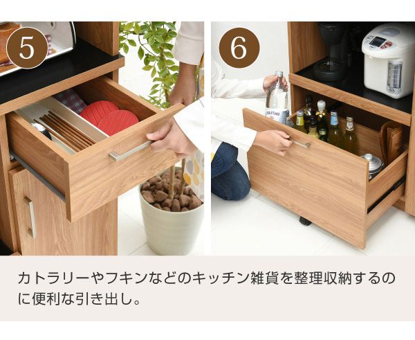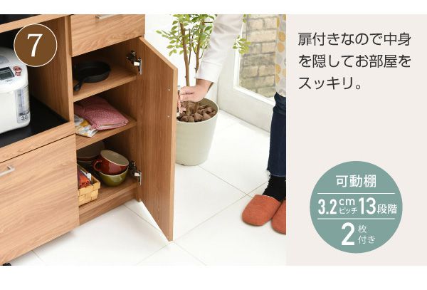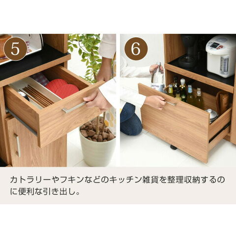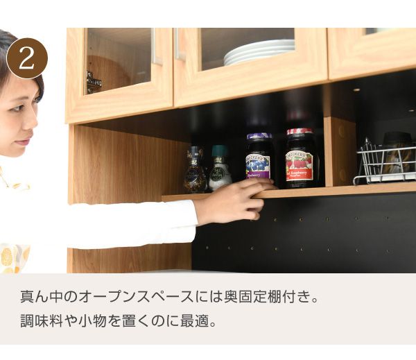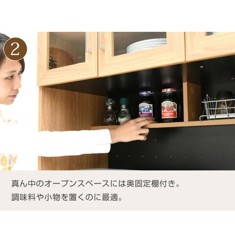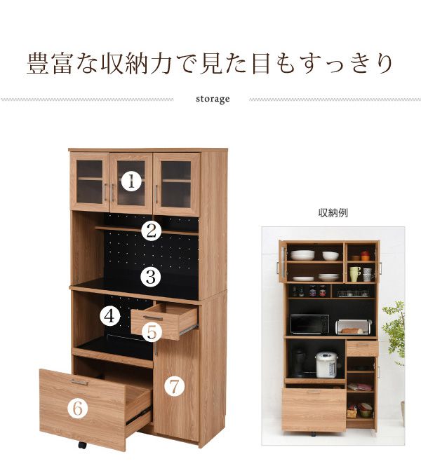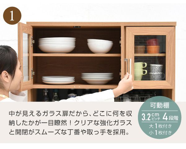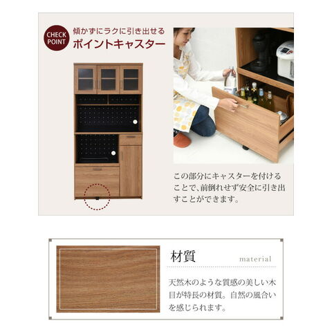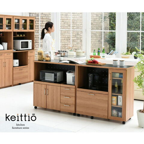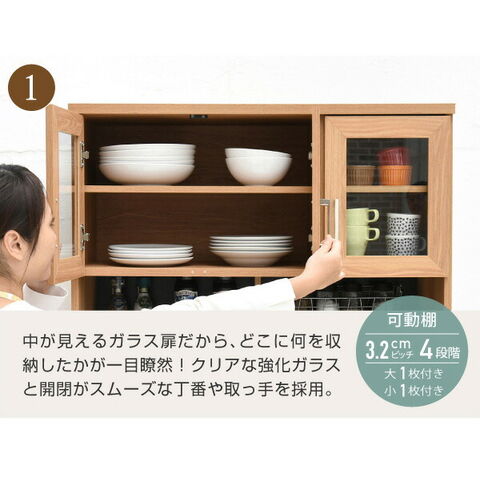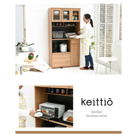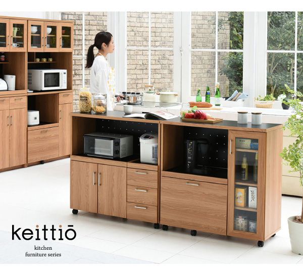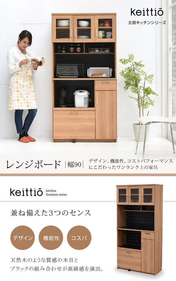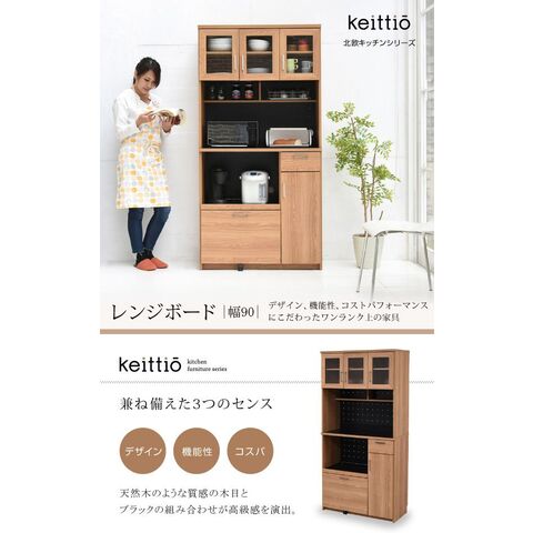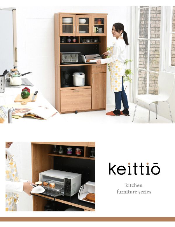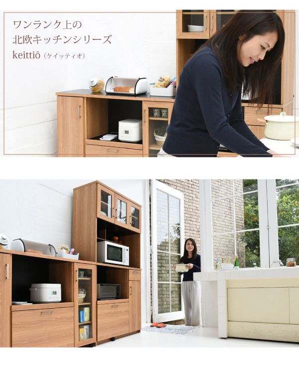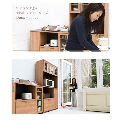 置くものを選ばない食器戸棚付きレンジ収納ラック。これ一台でおしゃれな北欧キッチンに早変わり! キッチン家電 食器 すべてが収まります。デザイン性、機能性、収納力に富んだ実力派のレンジ台。