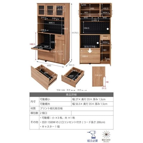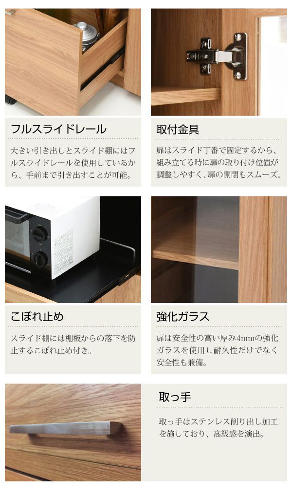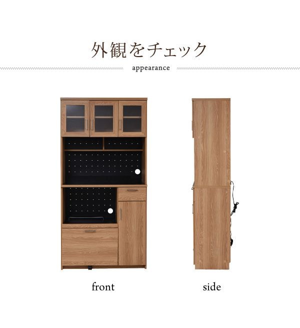 レンジ台 幅90 高さ180 レンジ棚 レンジラック 食器棚 レンジボード 北欧 キッチン収納 スライド棚 付き ガラス扉 キッチン家電収納 家電ラック 家電収納 キッチン 収納棚【送料無料】のレビュー