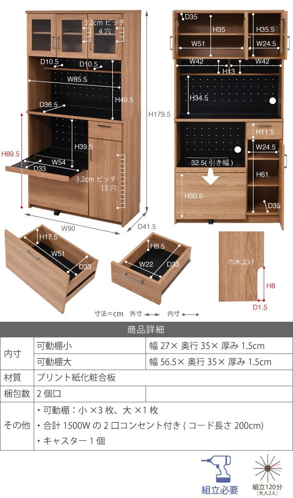幅90×奥行41.5×高さ179.5cm