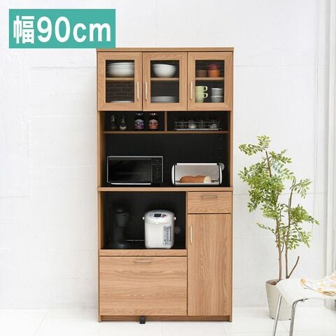 レンジ台 幅90 高さ180 レンジ棚 レンジラック 食器棚 レンジボード 北欧 キッチン収納 スライド棚 付き ガラス扉 キッチン家電収納 家電ラック 家電収納 キッチン 収納棚【送料無料】