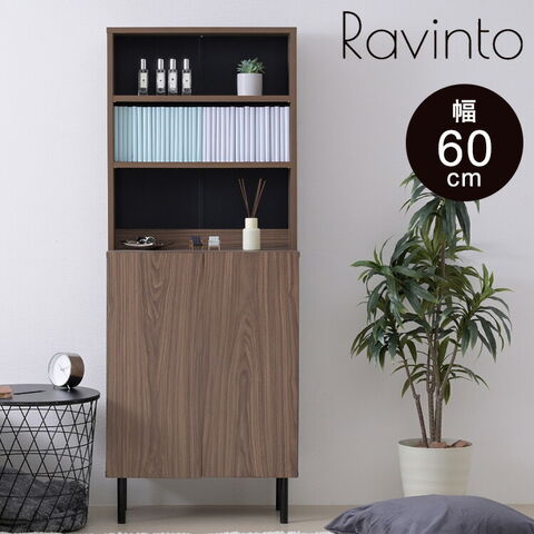 雑貨や小物を並べられるオープンラック付きのリビング収納"Ravinto"。雑誌やa4ファイルも入る、扉付き収納スペースもあるので、隠す収納も可能なリビングキャビネット