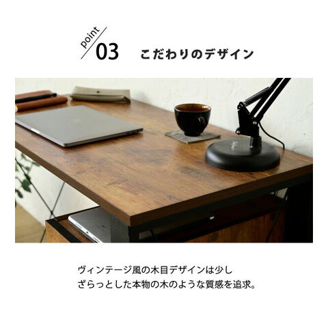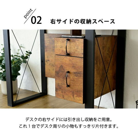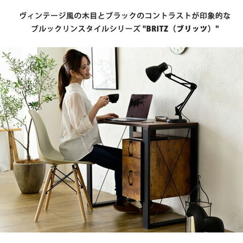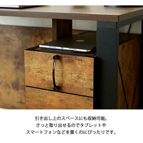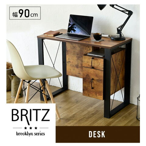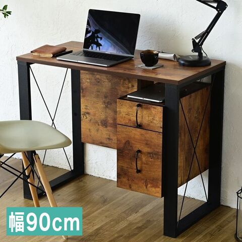 ヴィンテージ調 デスク 幅90 チェスト付き パソコンデスク ワークデスク おしゃれ 90×50 書斎机 PCデスク 在宅勤務 テレワーク ブルックリン【送料無料】