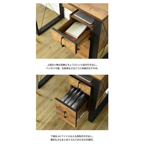 便利な大小2杯の引き出し付きで、下段にはA4ファイルも収納可能。