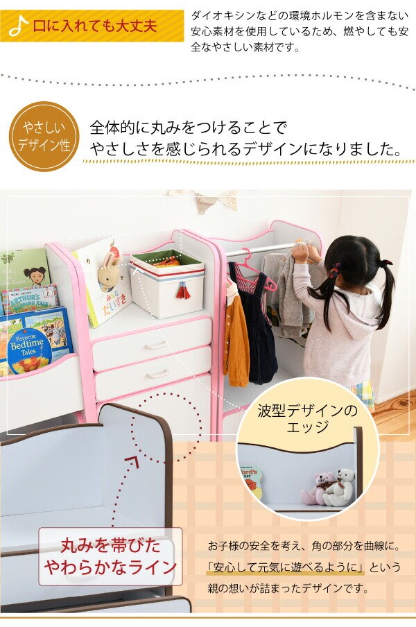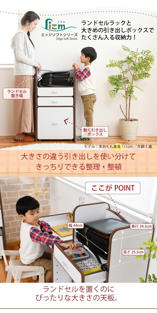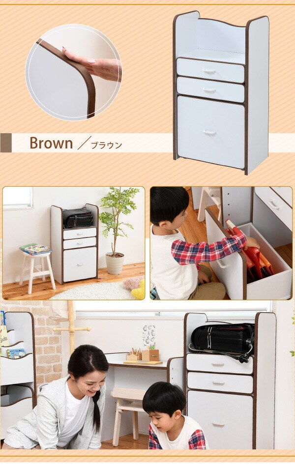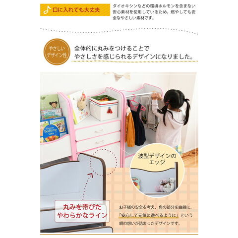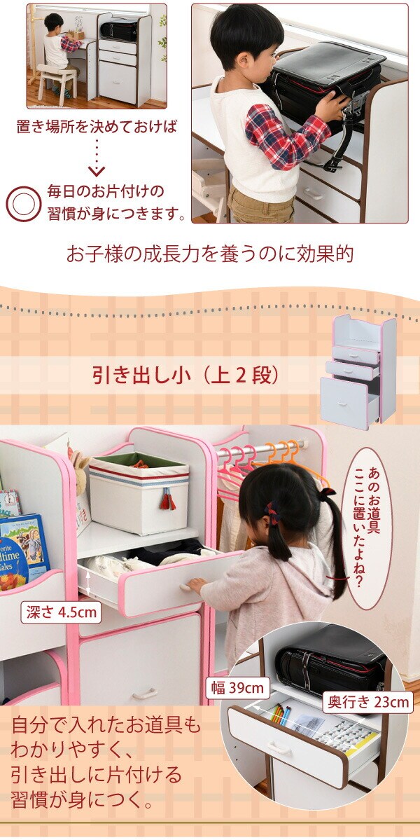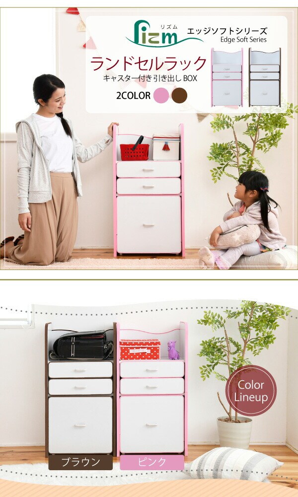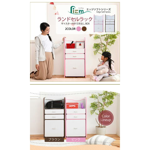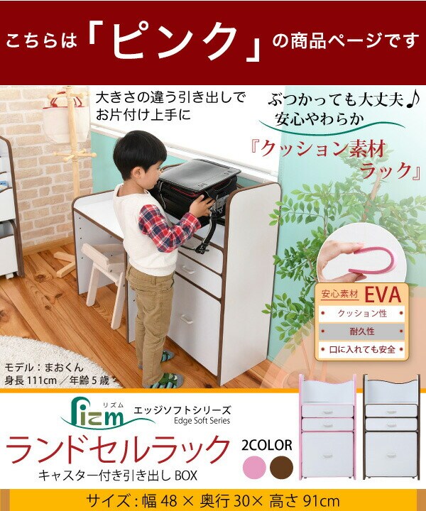 ソフトエッジで安全なキッズ ランドセルラック 幅48 奥行29 高さ90 収納 スリム 子供 ランドセル 木製 キャスター付き ピンク【送料無料】