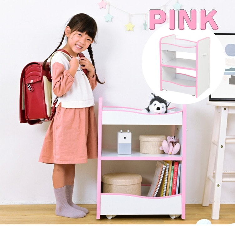 ランドセルラック キャスター付き 収納ワゴン オモチャ収納 おもちゃ収納棚 おもちゃラック 収納ボックス コンパクト 白 玩具 子供用 デスクサイド ワゴン【送料無料】