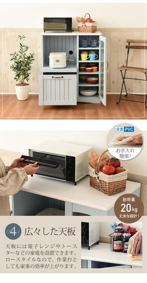 フレンチカントリー キッチンカウンター レンジ台 幅 75 高さ 90 スライド棚 付 コンセント 付 キッチン収納 収納 ガラス扉 姫【送料無料】