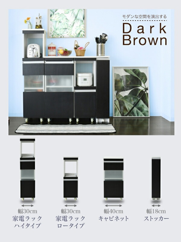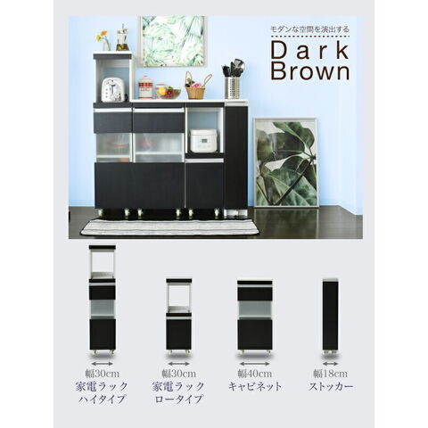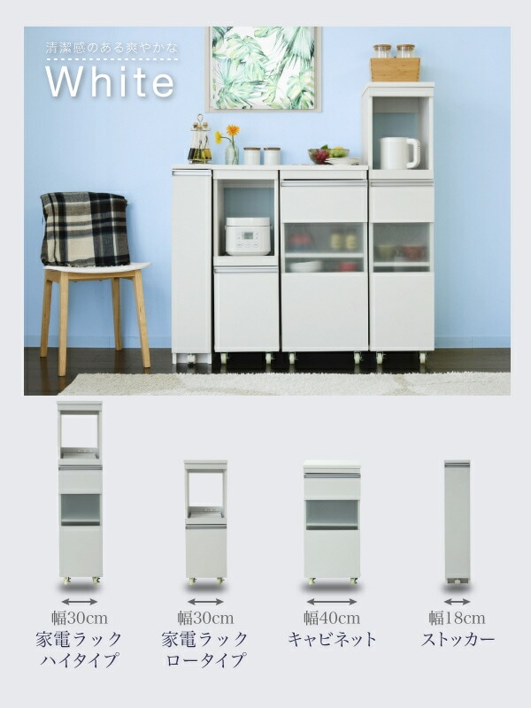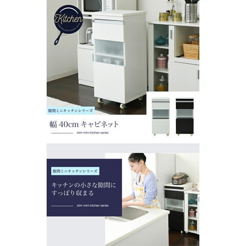 キッチン 隙間収納 ラック キャビネット 幅40 高さ90 奥行40 スリム 食器棚 4段 ロータイプ キャスター コンパクト 扉付き【送料無料】
