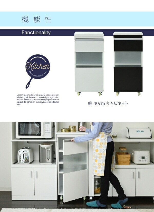 キッチン 隙間収納 ラック キャビネット 幅40 高さ90 奥行40 スリム 食器棚 4段 ロータイプ キャスター コンパクト 扉付き【送料無料】のレビュー