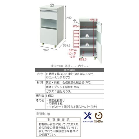 幅40×奥行39.5×高さ90cm