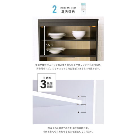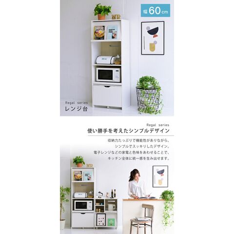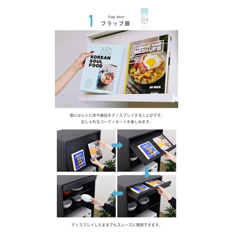 さりげないツートーンが印象的なキッチンシリーズRegal。コンパクトながらもオープンラックやスライド収納、フラップ扉に引き出し収納など、豊富な収納を備えた機能的なキッチンカウンターです。引き出しは2Lのペットボトルも入るサイズ設計。