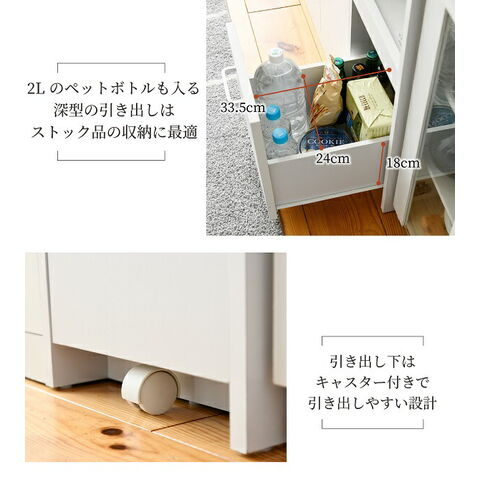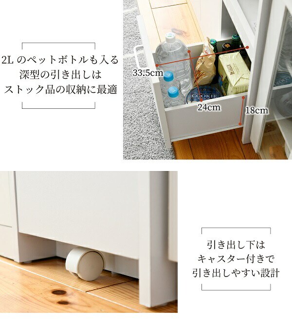 ペットボトルも収納可能な深めの引出しもあります。