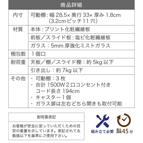 [スライド棚]約5kg以下