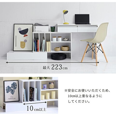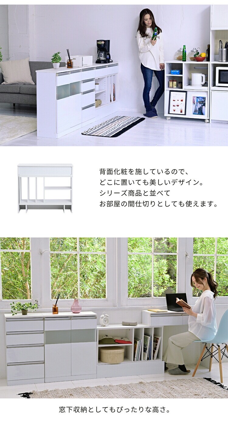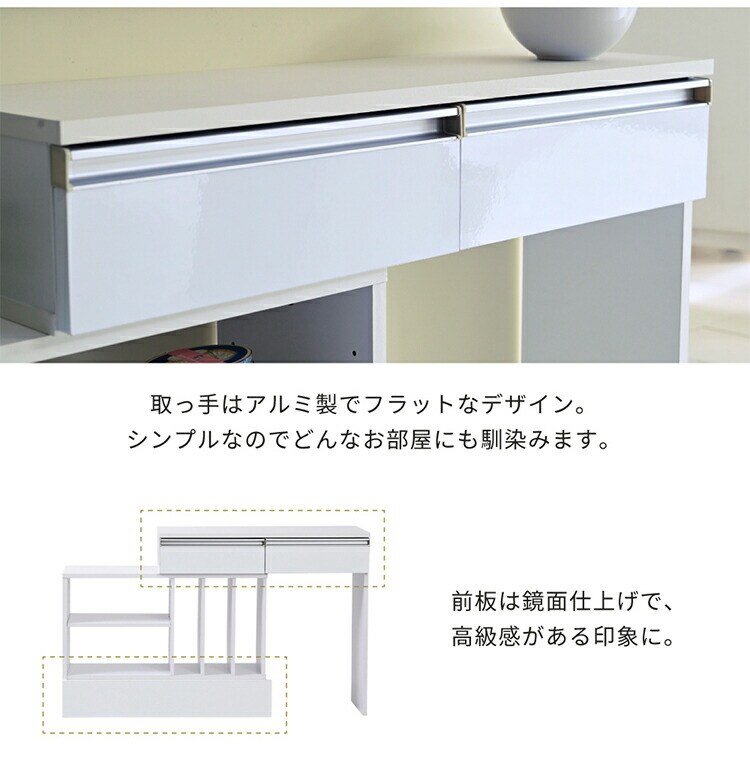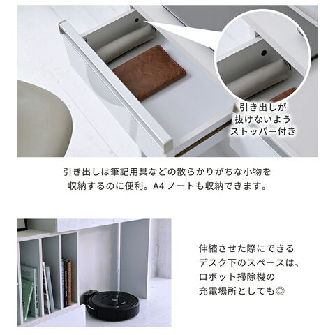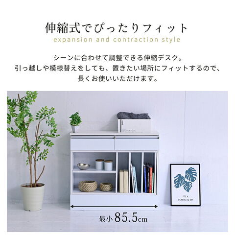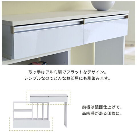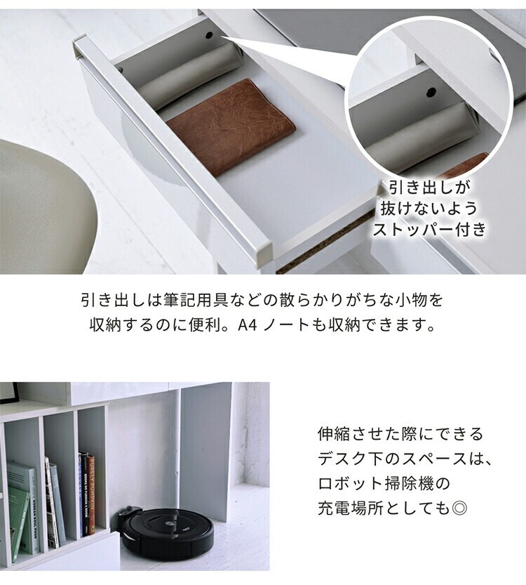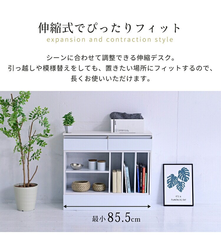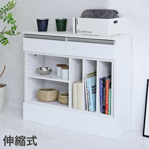 カウンター下収納 伸縮ラック 鏡面仕上げ 白 ホワイト 伸縮デスク オープンラック 棚 ラック ロボット掃除機収納にも 背面化粧 間仕切り カウンター下 収納 北欧 おしゃれ【送料無料】