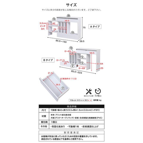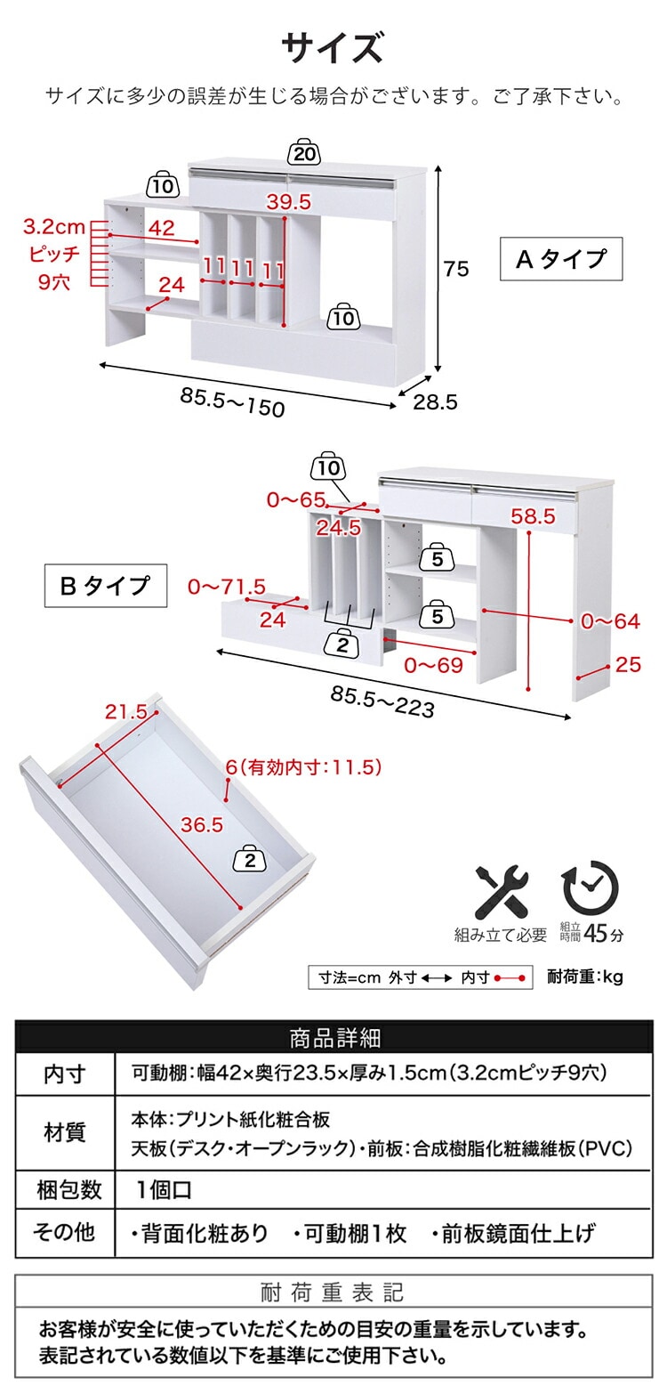 (Bタイプ)幅85.5~223×奥行28.5×高さ75