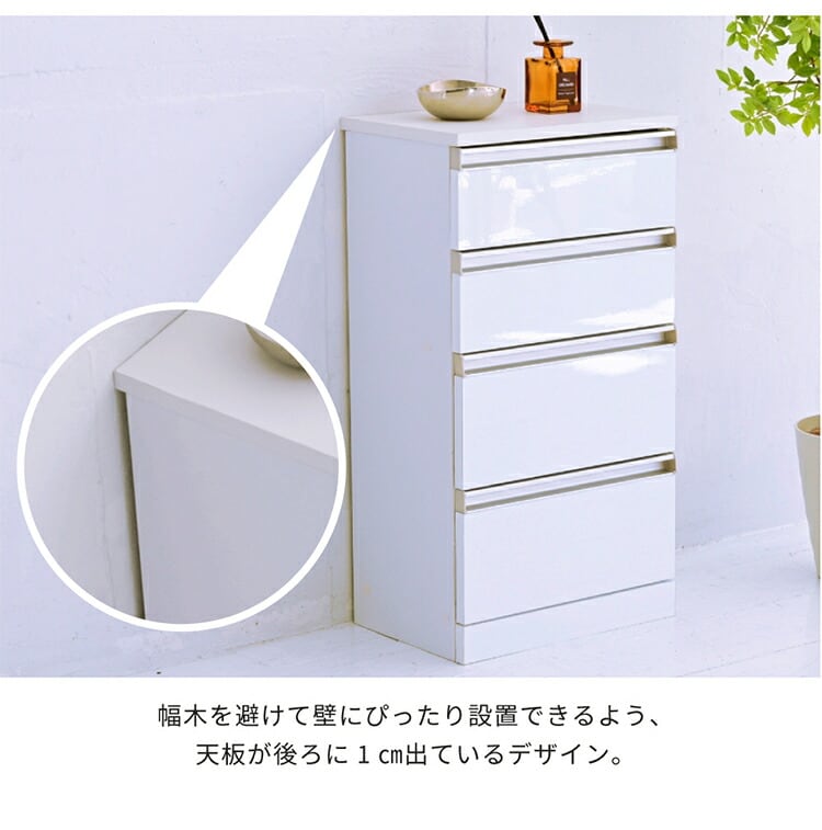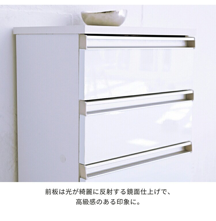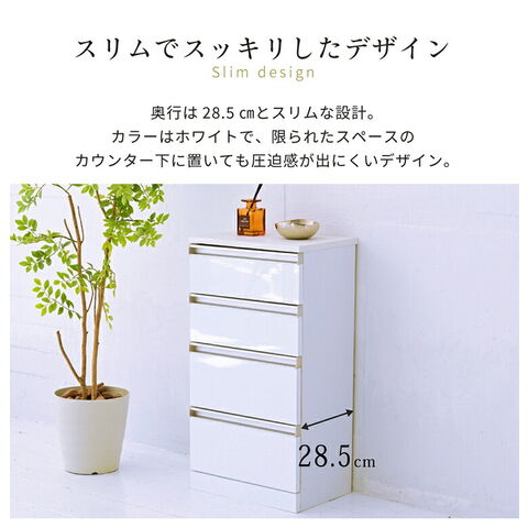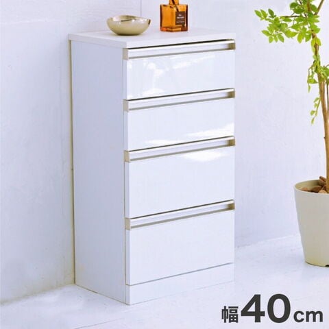 カウンター下収納 4段チェスト 幅40 鏡面仕上げ 白 ホワイト 引き出し 引出し 棚 ラック 収納 スリム コンパクト リビング収納 カウンター下 収納 北欧 おしゃれ【送料無料】