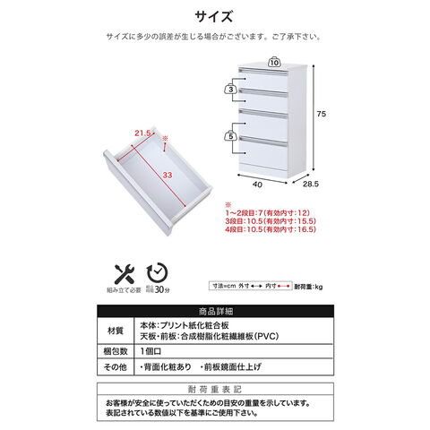 カウンター下収納 4段チェスト 幅40 鏡面仕上げ 白 ホワイト 引き出し 引出し 棚 ラック 収納 スリム コンパクト リビング収納 カウンター下 収納 北欧 おしゃれ【送料無料】のレビュー