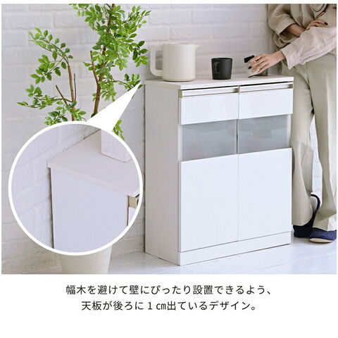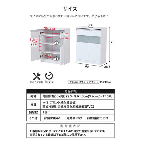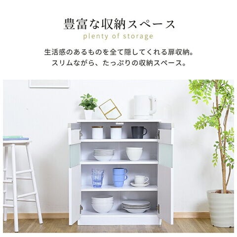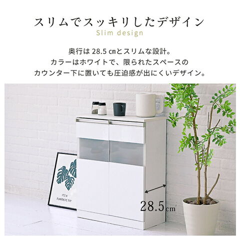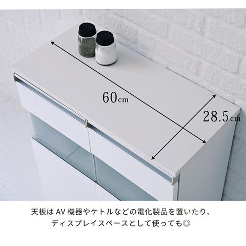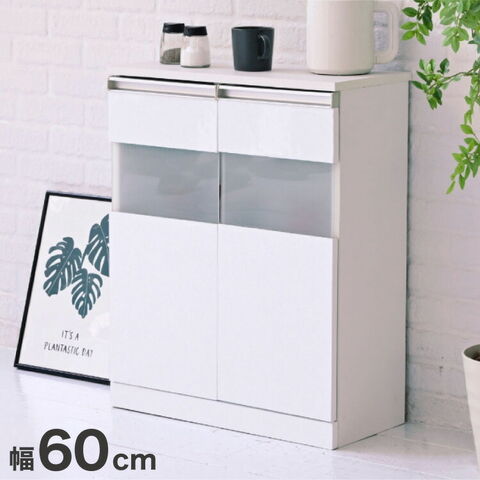 カウンター下収納 サイドボード 幅60 鏡面仕上げ 白 ホワイト 扉収納 キャビネット 食器棚 すりガラス スリム コンパクト リビング収納 カウンター下 収納 北欧 おしゃれ【送料無料】
