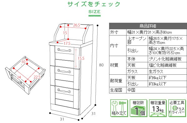 幅31×奥行31.5×高さ80cm