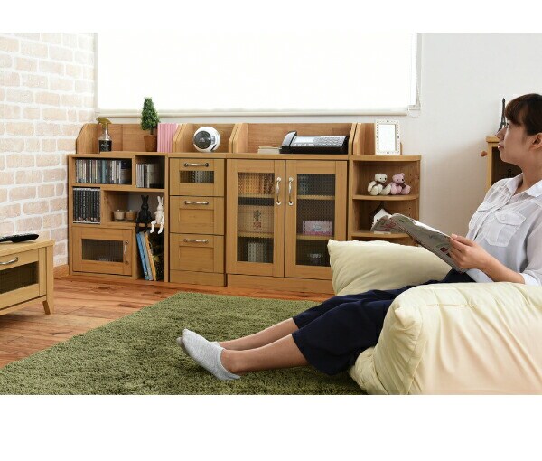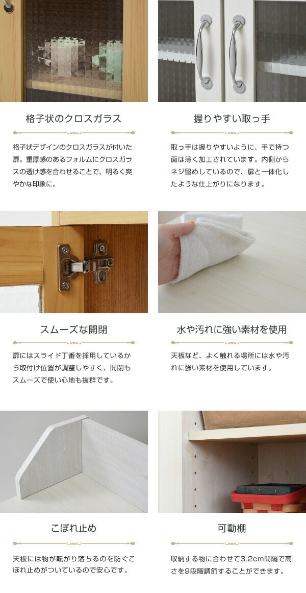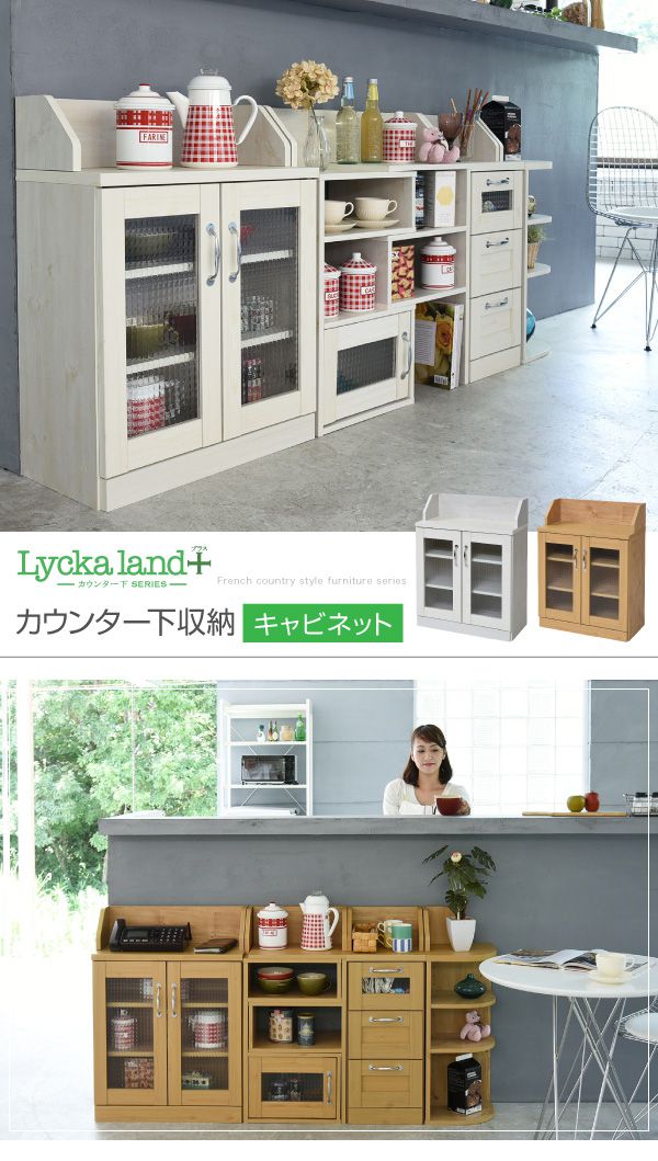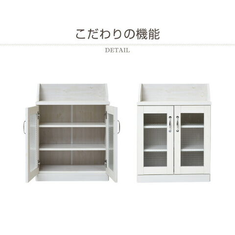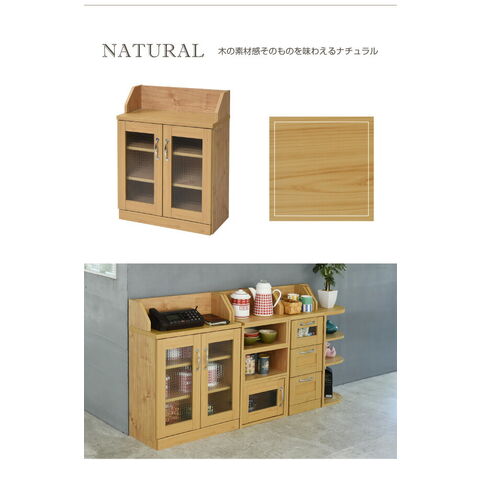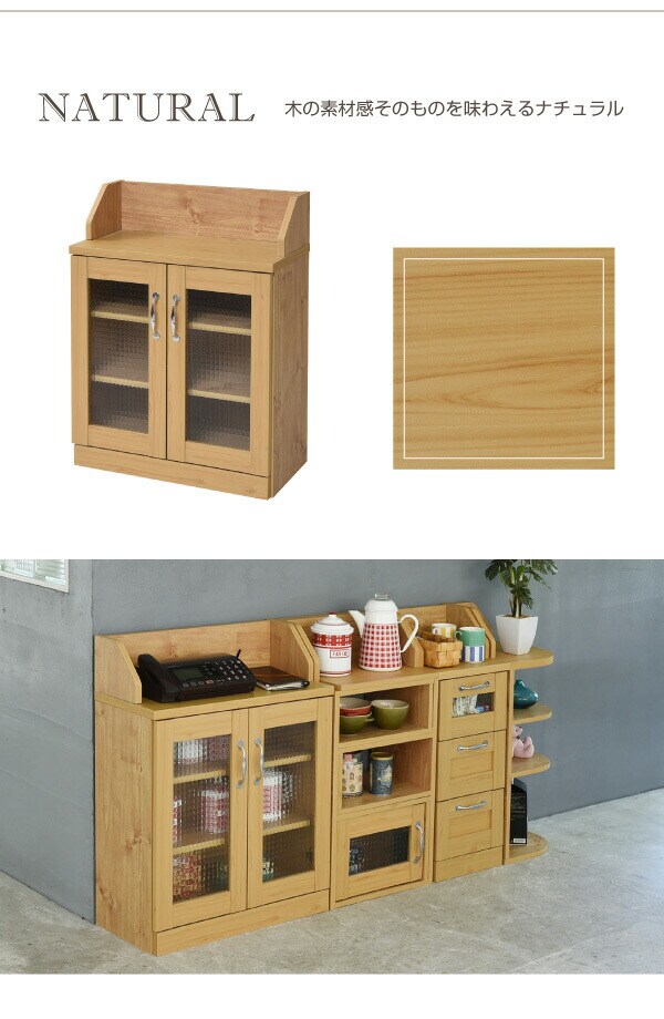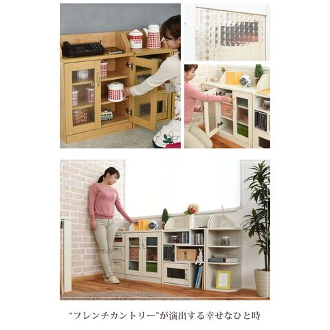 カウンター下収納 キャビネット カントリー調 薄型 高さ80 リビングキャビネット 幅60 ガラス扉 カウンター下 ナチュラル【送料無料】