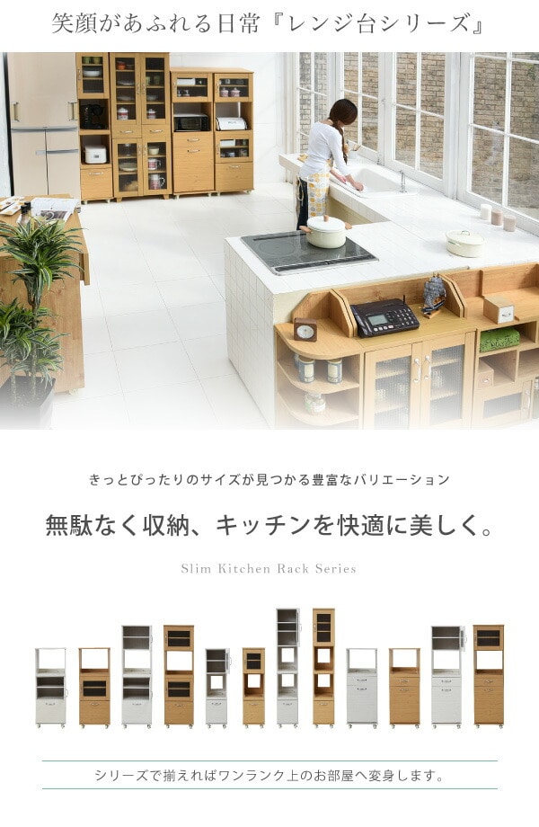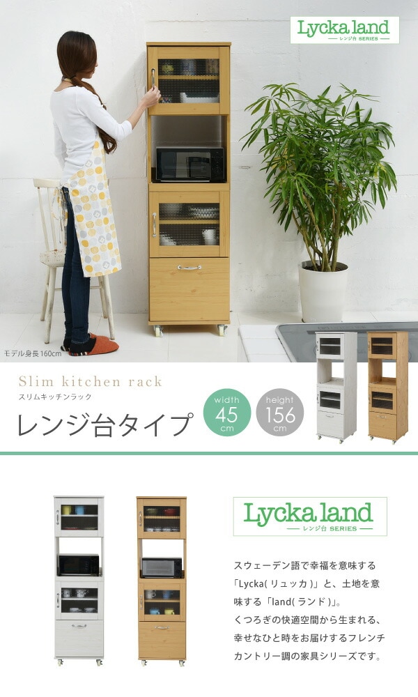 スリム レンジ台 食器棚 レンジラック 幅 45 H156 キッチン スライド キッチンラック ラック ホワイト【送料無料】