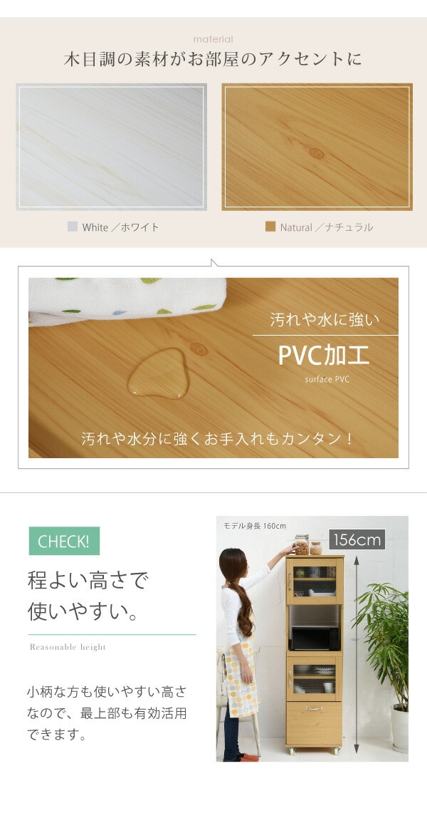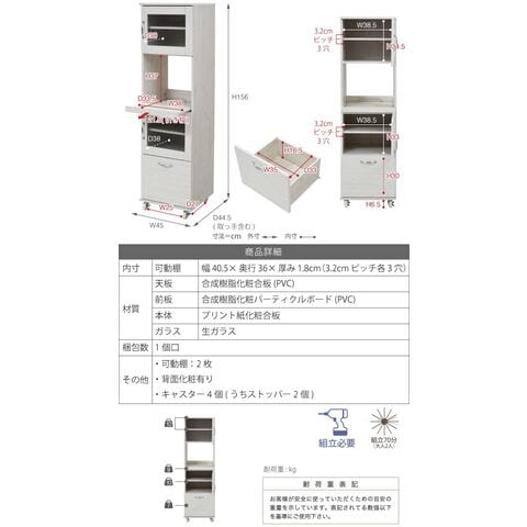 スリム レンジ台 食器棚 レンジラック 幅 45 H156 キッチン スライド キッチンラック ラック ホワイト【送料無料】のレビュー