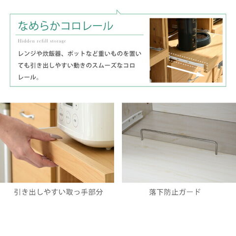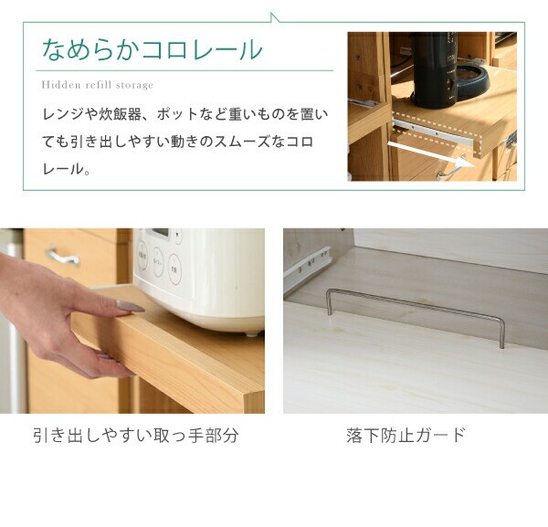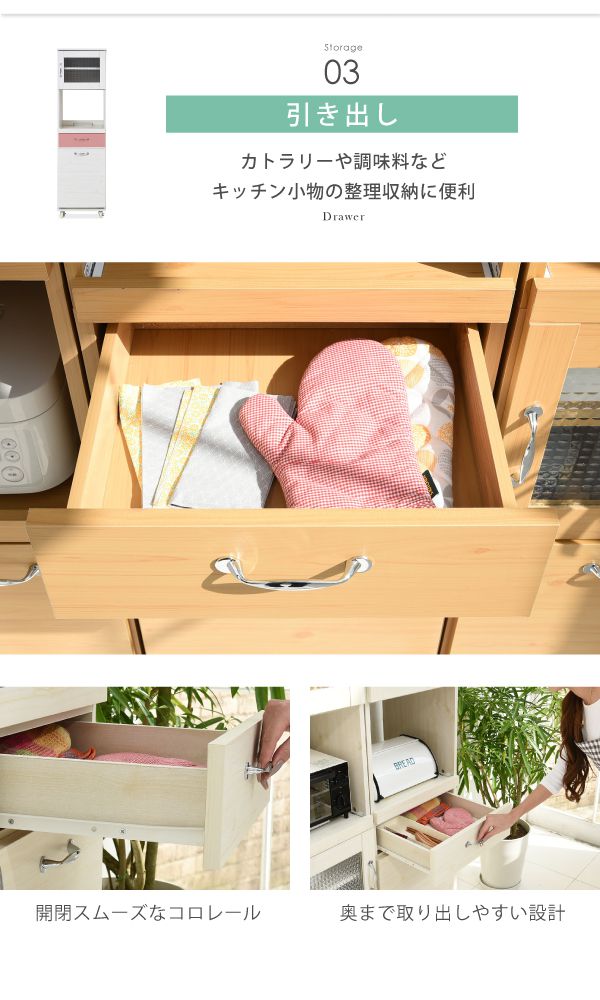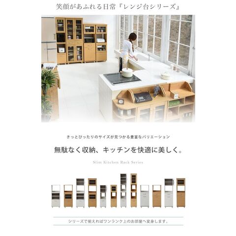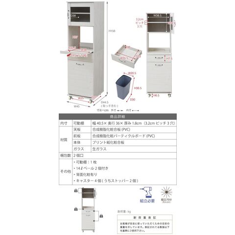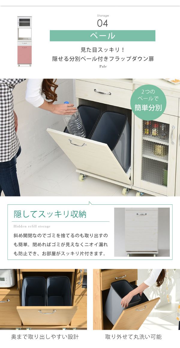 食器棚 コンパクト レンジ台 レンジラック ダストボックス ペール付 幅 45 キッチンラック ゴミ箱 分別 H156 ナチュラル【送料無料】