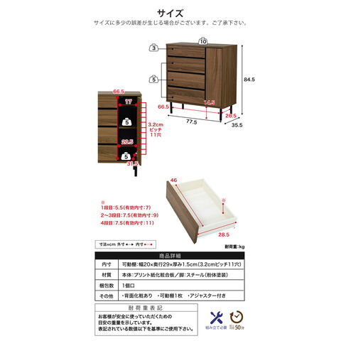 (引き出し4段目)幅46×奥行28.5×高さ7.5(有効:11)cm