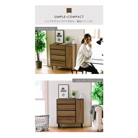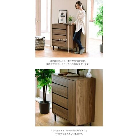 高さ90、リビングチェスト、収納、洋服収納、小物、服、キャビネット、80、ブラウン、四段、ワイド、80cm幅、間仕切り、おしゃれ、ブラウン、ブラック