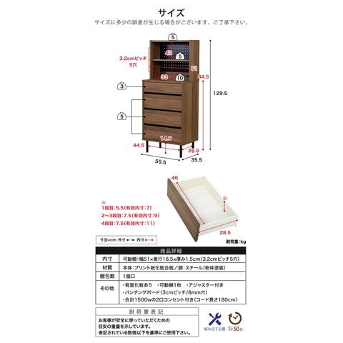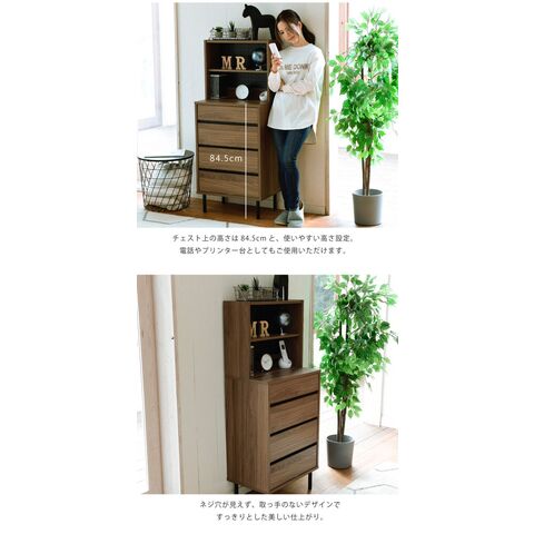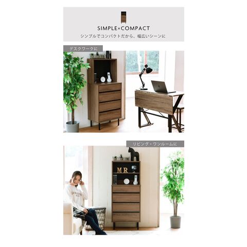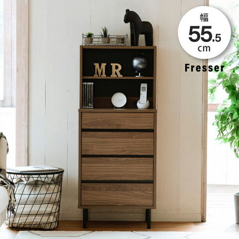 サイドボード 幅55.5 スリム 飾り棚付きチェスト コンセント付きチェスト ラック付き 木製 4段 北欧 ブラック ブラウン 引き出し 脚付き 黒 奥行35.5 薄型 収納【送料無料】