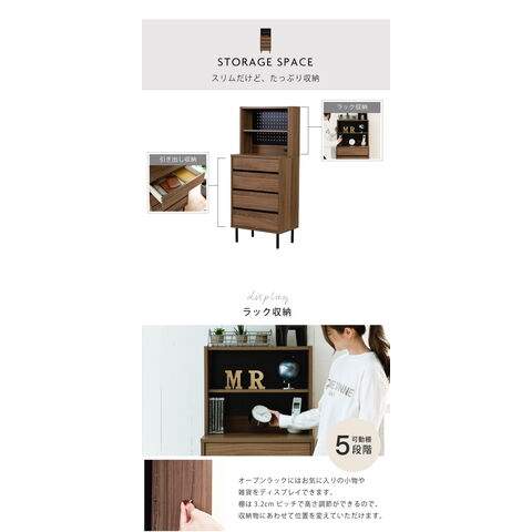 リビングチェスト、飾り棚付きキャビネット、飾り棚、引き出し付き、ラック付きチェスト、ハイチェスト、キャビネット、大容量、幅50、チェストラック、チェスト、コンセント付き、リビングボード、薄い、ダークブラウン、ブラック、棚、収納付きチェスト、スリムラック、奥行30cm