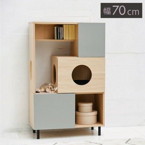 猫と暮らす キャビネット 幅70 キャットウォーク キャットタワー 猫 トイレ収納 棚 ペット用品 収納 ねこ家具 猫が遊べる家具 猫家具収納 収納ラック【送料無料】